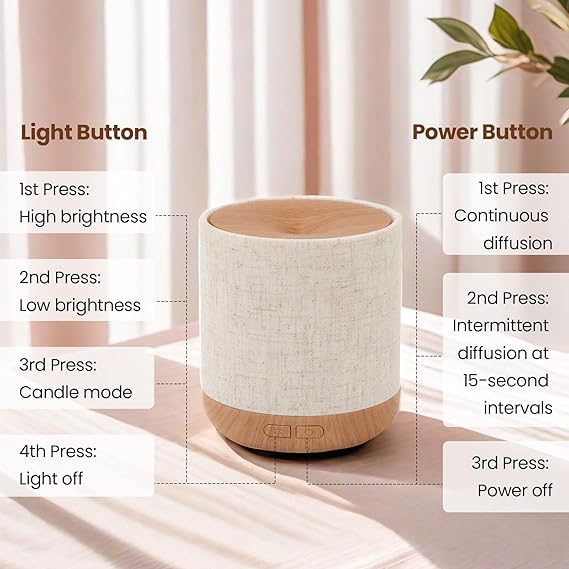 - Quiet operation: ultra-quiet ultrasonic technology for peaceful aromatherapy.